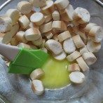 焼き麩に溶かしバターが均等に行き渡るように混ぜる。
