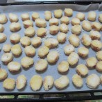 天板にオーブンシートを敷いて、隣同士がくっつかないように2を並べ、170度のオーブンで10分焼く。 - 4.
