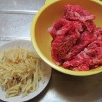 牛肉は適当な大きさにカットし、生姜は千切りにする。