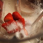 いちごはヘタを取り グラニュ糖と共に ミキサーに入れる