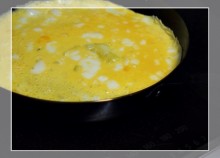 鉄板に卵を敷いたものに盛り付けると