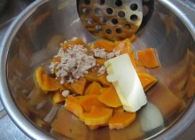 かぼちゃに、きび砂糖・バター・シナモンを加えて潰す。