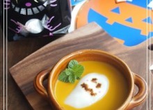 ハロウィンに かぼちゃのお汁粉と白玉だんご