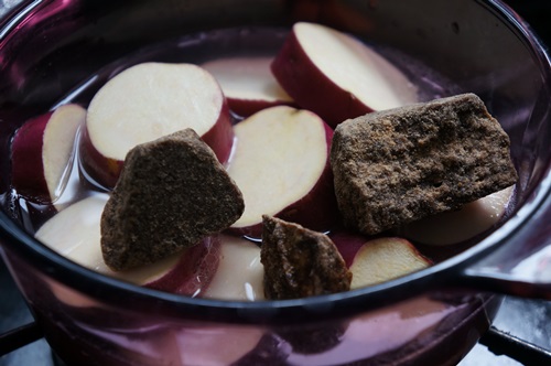 さつまいもを、固形黒砂糖でこっくりと煮てみました。