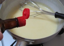 中火にかけ、ダマにならないようにとろみがつくまで泡だて器などで混ぜる。