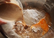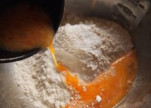 薄力粉に 卵を入れる