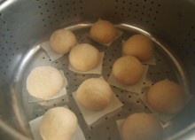 蒸し器にキッチンペーパーを切り入れ 中火から弱火で10分蒸す