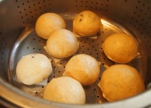 底になる部分は薄く 上に来る部分は厚くなるようにすると 美味しいおまんじゅうが出来ると思います。