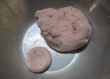 苺は大きさなどで水分量が違うので、団子の柔らかさをみながら徐々に加えていく。 - 2.