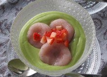 苺白玉のアボカドソース