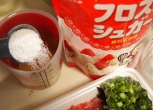 計量カップに 酢を計り フロストシュガーを 入れる