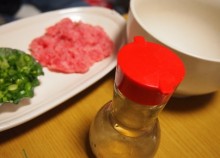 たっぷりご飯に 寿司酢をかけ マグロのたたきを載せたら