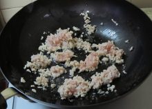 熱したフライパンにサラダ油を入れ、ひき肉を炒める。