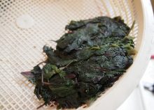 茹であがった 葉を取り出す