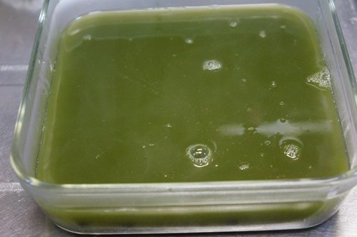 抹茶味の寒天を作ってみました。グラニュ糖の上品な甘さが抹茶にぴったりです。