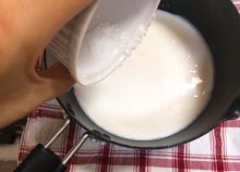 牛乳を沸騰させたり泡立てるように混ぜると、気泡ができてしまい仕上がりが悪くなるので注意!!