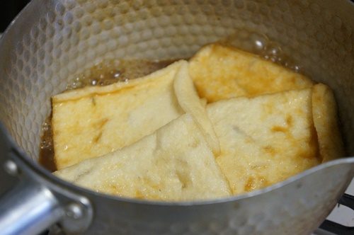 油揚げを煮るときは、お水を加えると味が染みこみやすいです。