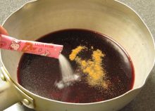 鍋のふちにワインが沸々と煮立つくらいに温めて下さい。