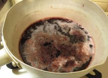中火にかけ、鍋のふちにワインが沸々と煮立ったら出来上がり。
