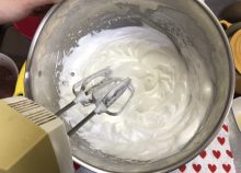 別のボウルに卵白とグラニュ糖を入れ、しっかりと泡立てメレンゲを作ります。
