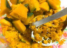 かぼちゃが熱いうちに粗めにマッシュしていきます。