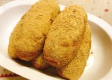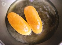 ロールパンをきつね色になるまで返しながら揚げます。