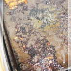 ごく弱火にして、焦げをその都度取り除いて焼いてください。