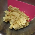 ふるい合わせたアーモンドプードルと薄力粉を入れ、カードやヘラで粉っぽさがなくなるまで練らないようにザッと混ぜる。