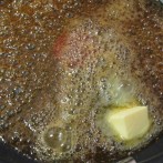 飴色に茶色く色づいてきたら火を止め、バターの半量を溶かす。 - 5.
