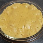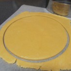 生地を焼き型よりも一回り大きくカットし、林檎を詰めた型の上に乗せる。 - 8.