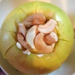 りんごをくり抜き、粉末焚黒黒砂糖(加工黒糖)・バター・ナッツを入れて