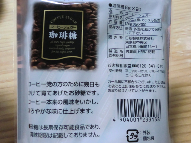 そのお店のテーブルに置いてあったコーヒーシュガー。