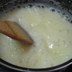 火からすぐにおろして、5分くらい木ベラで混ぜる。