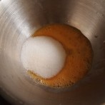 卵に グラニュ糖を入れ 電動ミキサーでよく混ぜる