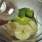 アボカドとバナナをミキシングしやすい大きさにカットし、ヨーグルトとガムシロップカロリーゼロを加えてミキサーなどにかけます。