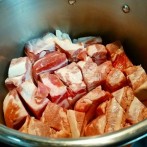 豚肉は3cm厚さ、幅4~5cmに切り、圧力鍋に並べます。