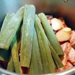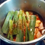 鍋の中の圧力が下がってから蓋を開けます。長ネギを取りだしておきます。