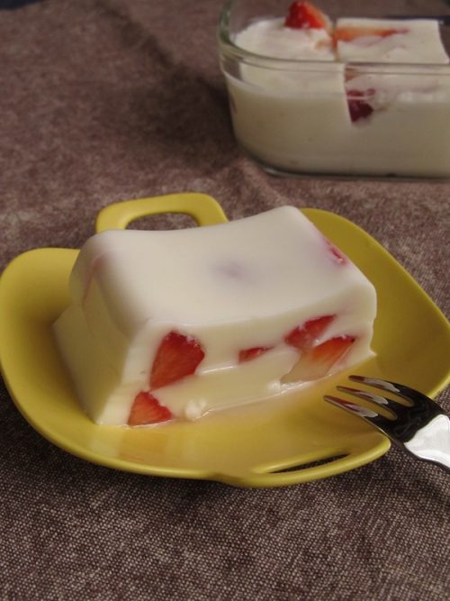 真っ白な牛乳寒天に赤い苺が映えます♪