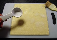 パイシートにハケで水を薄く塗り、グラニュ糖大さじ1杯を振りかける。 - 2.