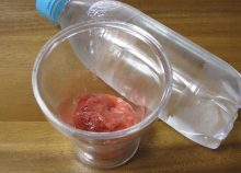 器に苺を入れて、寒天液を注いで冷やし固めたら出来上がり。