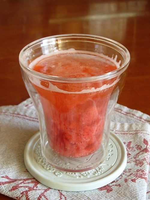 レンジでチンして苺シロップを作り、炭酸で割っています。