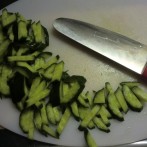きゅうりを半分に切ります。