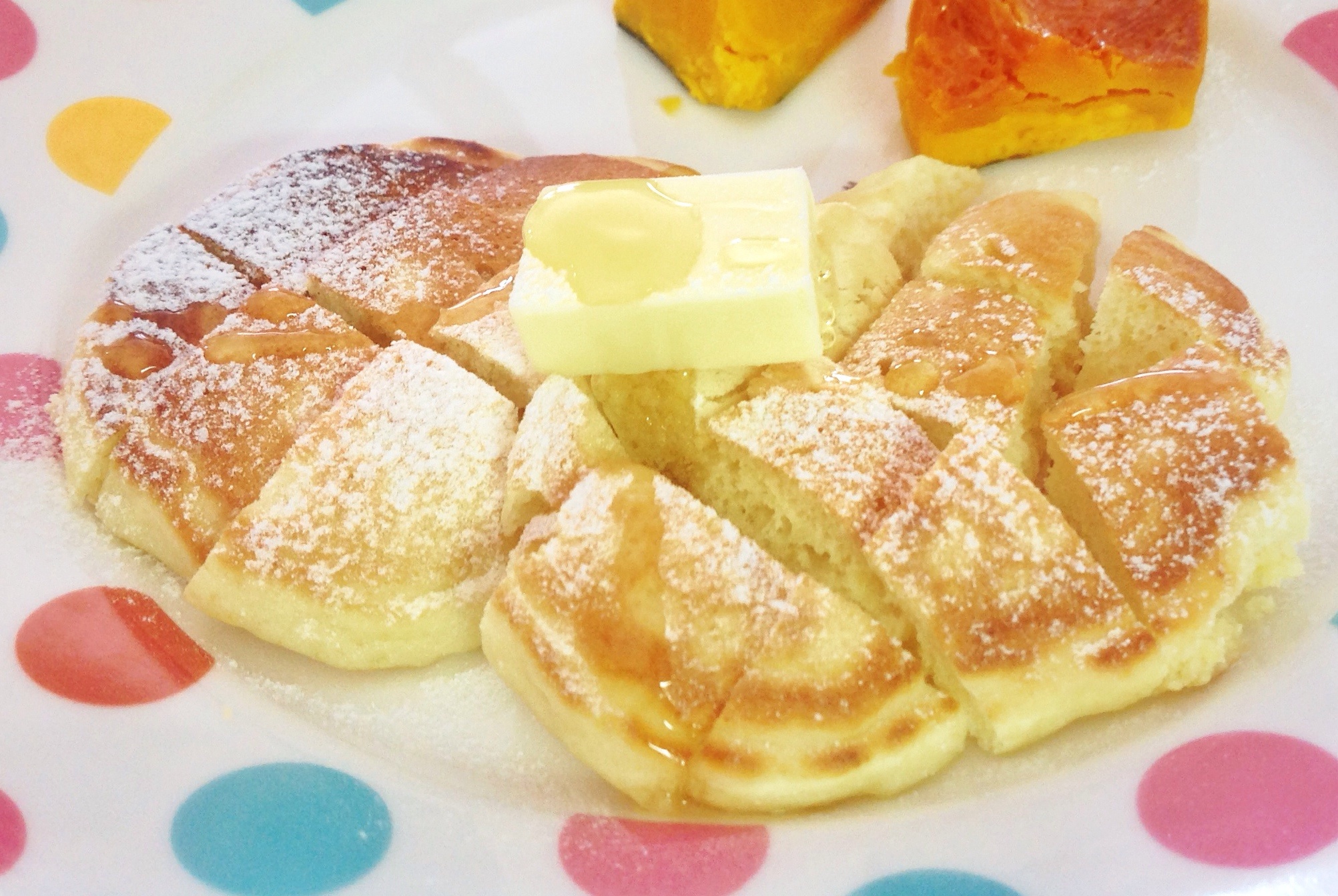 いつものホットケーキも、粉糖でお化粧するだけで、超べっぴんさんです。