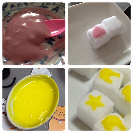 娘と協力して可愛い角砂糖にしました。