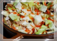 蒸気を吸い込まないように注意しながらしんなりするまで炒める。