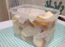 冷蔵庫で漬けこむと、簡単美味しい洋梨シロップが出来上がり!!!